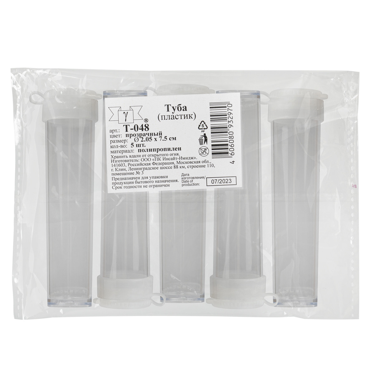 " Gamma" Туба T- 048 пластик d 2. 05 см x 7. 5 см прозрачная